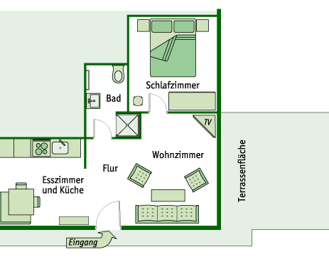 - großzügig angelegter Wohnraum (Fernseher mit Sat-Empfang)